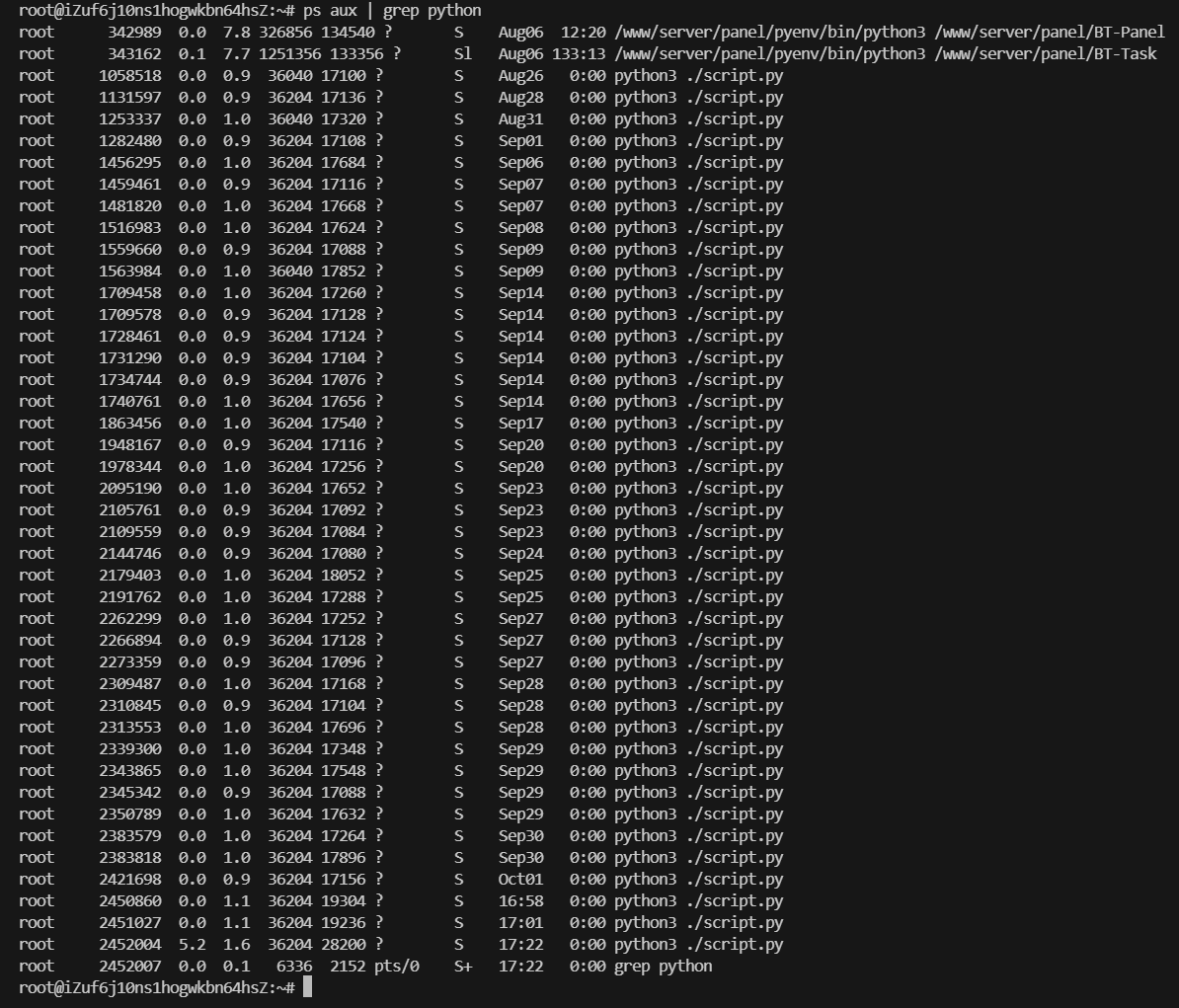 在上图中可以发现,异常进程执行的命令几乎都是python3 ./script.py