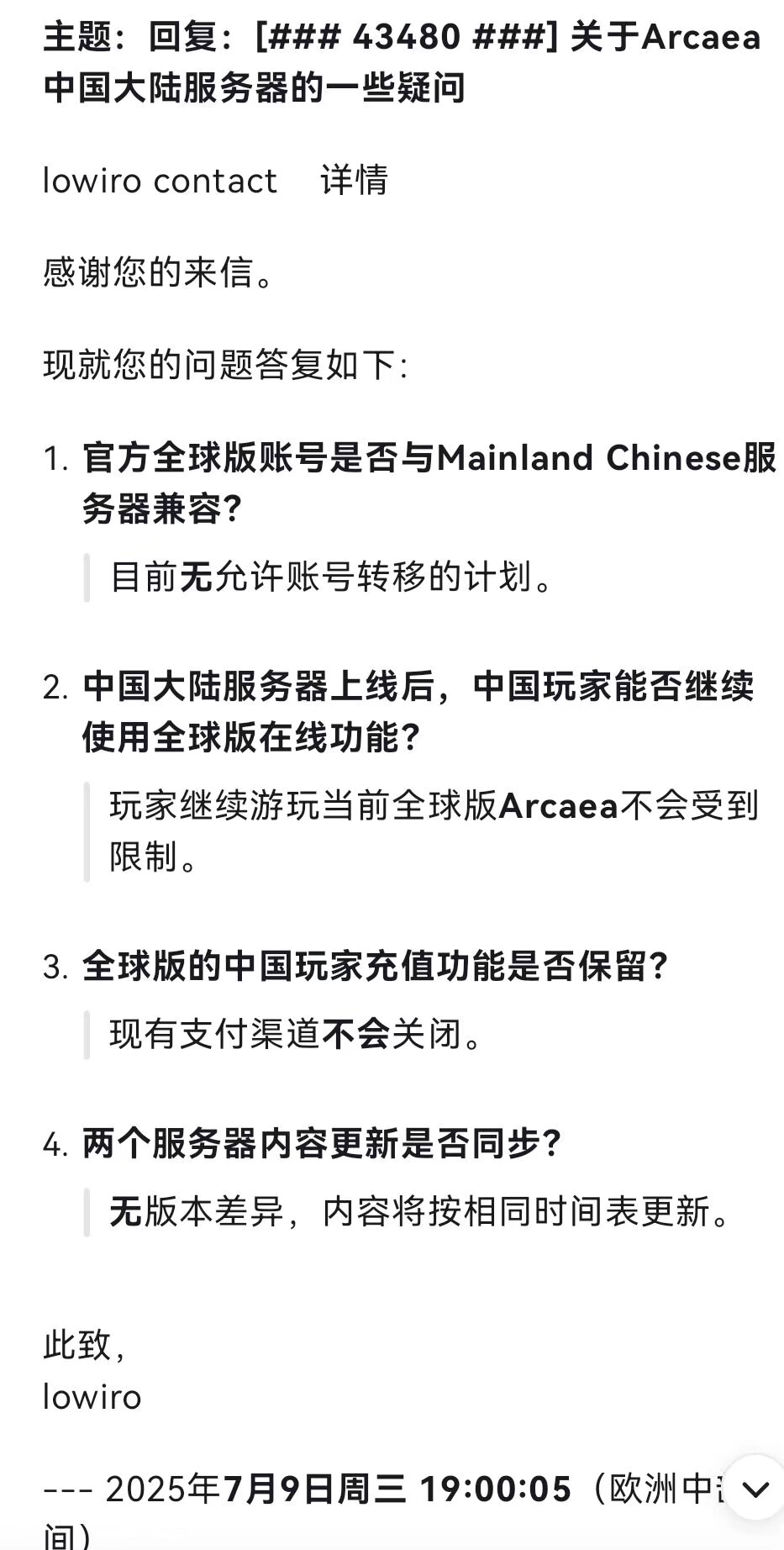 2025年7月15日 10:09更新:616对于中国大陆玩家的部分问题进行了如下回应